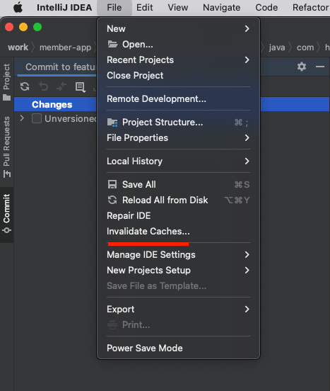 IntelliJ - File - Invalidate Caches 를 통해 캐시 삭제를 진행할 수 있다.