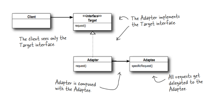 위 내용을 객체지향 프로그래밍에 적용시켜 보면 어댑터 패턴은 아래와 같은 내용으로 설명할 수 있다.