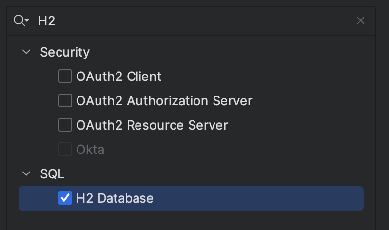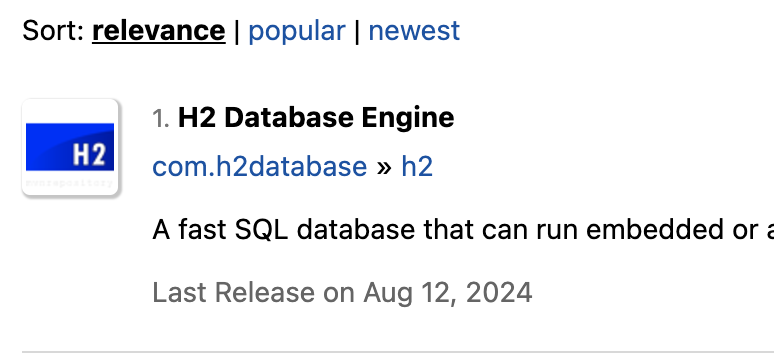 1. Spring 프로젝트 초기 생성시 Spring Initializr를 통해 H2 Dependency 추가 하거나 혹은 [Maven Repository]를 통해 H2 를 추가한다.