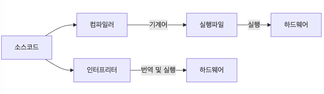 반면, Java는 플랫폼 종속적인 문제를 해결하기 위해 인터프리터(Interpreter) 방식을 사용하고 있고, Java 코드가 바이트 코드로 변환 후 기계어로 번역되는 과정으로인해 컴파일러 방식에 비해 플랫폼 독립성은 보장되지만 실행 속도가 느려지는 단점이 있다.