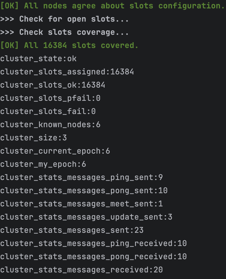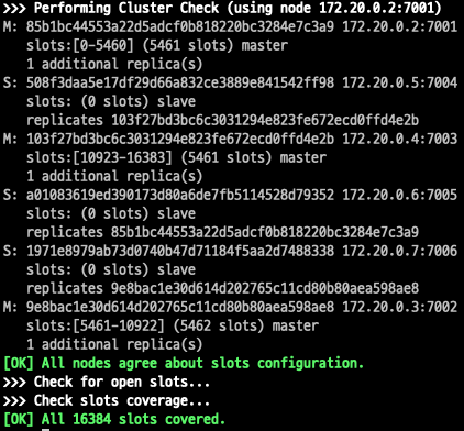 터미널 창을 통해 Redis 클러스터가 정상적으로 생성된 것을 확인할 수 있다.